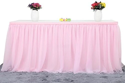 - SUPER EASY INSTALLATION: Pakage includes one 9ft length table skirt comes with a set of adhesive velcro hook and loops, just stick the loop part to the hem band of table skirt, put the hook part to the edge of your table, then put loop and hook part together, then done. There are extra hook and loops set for replacement.