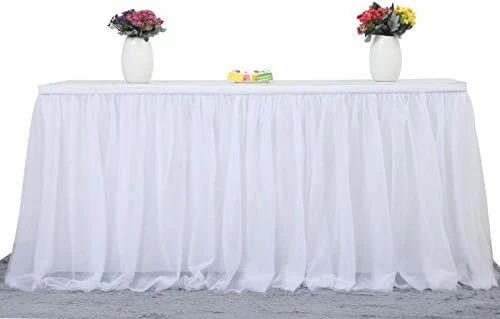 - SIZE: This is a 108inch length 30inch height table skirt, suitable for rectangle table or round tables, please measure your table size and the way you want to cover your tables before ordering. You can order one or more pieces to meet your purpose.