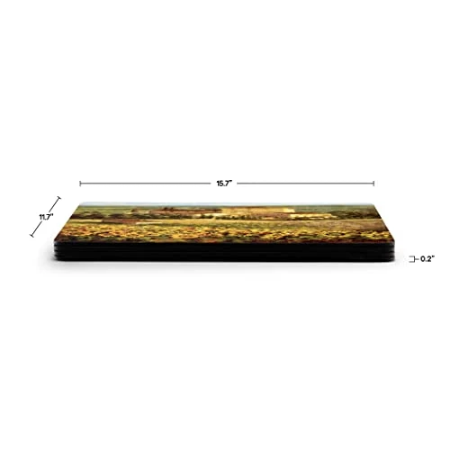 - PRODUCT SPECIFICATIONS: Package contains (1) Pimpernel Tuscany Collection Placemats – Set of 4. Made of Cork-Backed Board. Each Placemat measures 15.7 inches x 11.7 inches. Product Care: Clean with a damp sponge and dry with a soft cloth. Do not immerse in water.