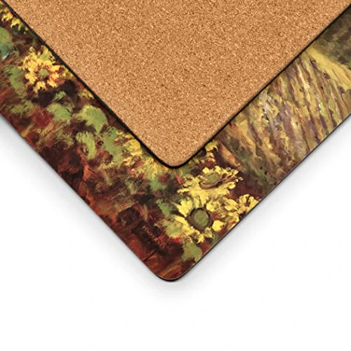 - STRONG AND STYLISH: Our quality placemats and coasters use a 5mm board topped with a unique and exclusive art print. Each is totally sealed with a high quality coating that is both stain and heat resistant to 212 degrees Celsius. The placemats and coasters are then finished with a hard-wearing cork back that protects precious furniture.