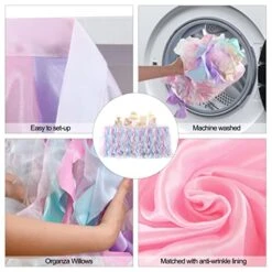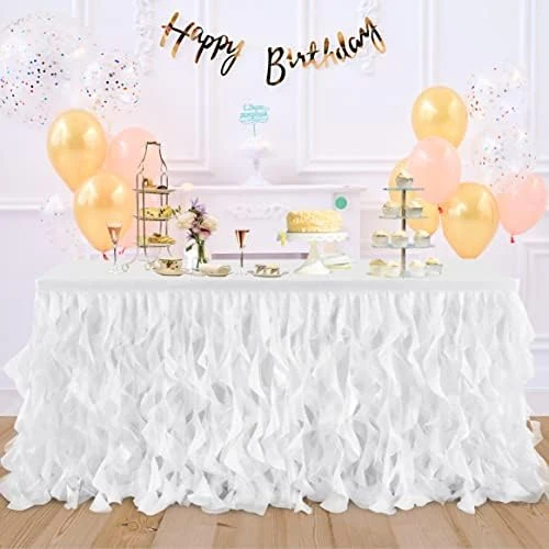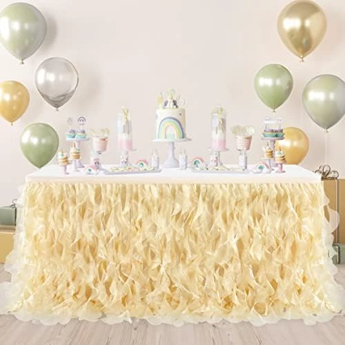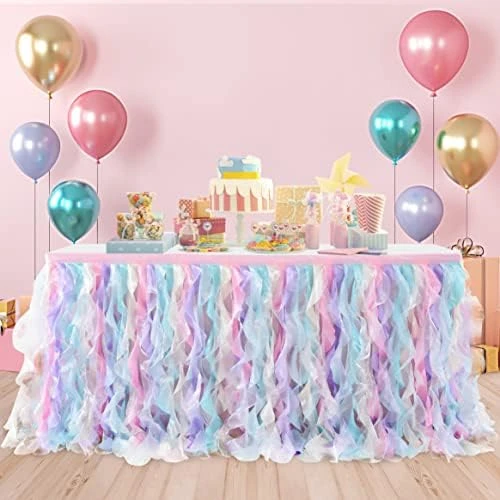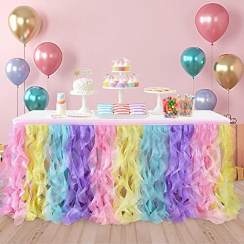 - 🎉【Tulle Table Skirt Material】: The curly willow table skirt is crafted from luxury satin and organza willows in a luscious double-layer volume. A unicorn rainbow tulle table skirt for rectangle tables easily elevates the look of the table covering by adding dynamic layers to an otherwise static decoration.