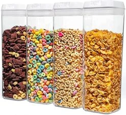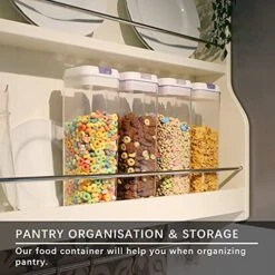 - Useful Capacity & Space Saving Design – The pasta containers for pantry are high enough to contain spaghetti or other pasta, cereal, corn flakes, crunch cereal, gluten-free cereal, frosted flakes, marshmallow in large package. Besides, the storage containers for pantry of same series can be stacked onto each other which makes pantry organisation much easier.