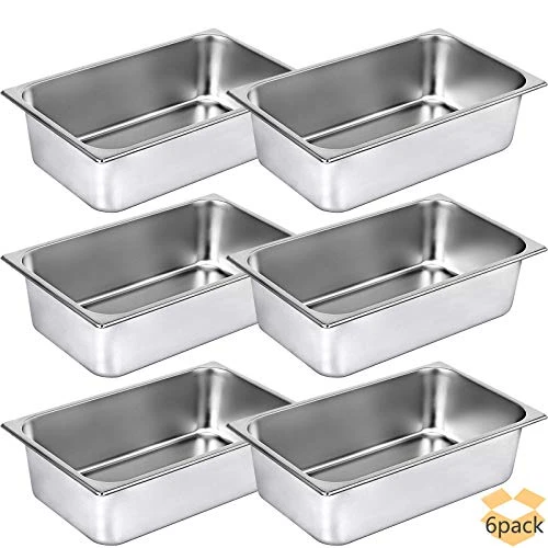 - 🍗【High Quality】- 6 inch deep full size steam table pan!Made of stainless steel, it can be durable for a long time. Excellent durability and thermal efficiency. Round corner protect users from any scratch. Thick side helps to strengthen the structure, resisting warp for their durability, Heavy gauge construction with proper weight, Feels sturdy when holding in hands, Corrosion resistant and rust-free, Durable for long time using