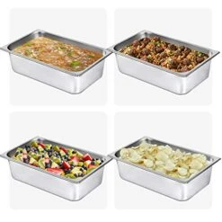 - 🍫【SUPERIOR DESIGN】- Each stainless steel steam table pan features anti-clog stacking lugs, so it won’t stick to other pans when you take it out of storage.hese casserole pans feature 6-inch high sides, Which help contain more food and prevent the sauce from spilling over, Wide crimping design for secure and comfortable holding, Smooth edge without rough spots to cutting hands