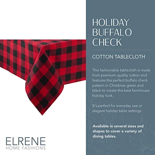- HIGH-QUALITY HOME DECOR: Made from durable 100% cotton, this buffalo-check tablecloth comes in multiple sizes and shapes, including round, oblong/rectangle, and square—perfect for formal and casual dining.