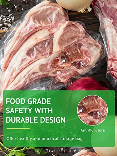 - Wide Range of Application: Archive nutrition and fresh to extend the shelf life, storage for vegetables, seafood, ribs, beans and pills, these food sealer vacuum bags work well for a variety of purposes. Reduce food waste and manage them reasonably.
