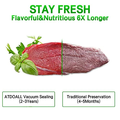 - 【Fits all Clamp Style Vacuum Sealers】Atdoall vacuum preservation bags are with embossed air-removal channel so is compatible with all vacuum sealer machines, the one side of bag is clear and the other with a textured, grid-like pattern, accords to the standard of vacuum, seal and be used widely.