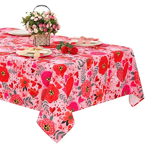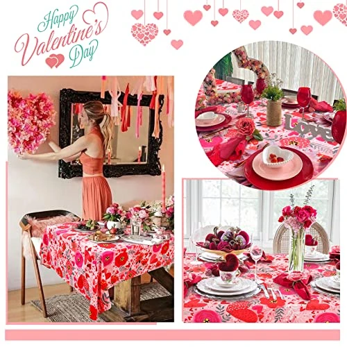 - ❤ Red Hearts Tablecloth: Perfectly match your love and hearts themed party, waterproof satin fabric durable and wrinkle free. Have fun decorating your table tops. Create a sweet and romantic atmosphere.