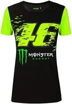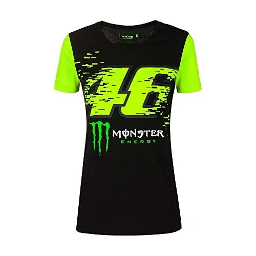 - Woman short-sleeved t-shirt part of Monster VR46 2020 collection. In cotton with polyester inserts, on the chest are printed a large number 46, present on the Yamaha M1 with which Valentino Rossi races in MotoGP, elaborated with a fading effect and the claw of Monster Energy. The marks are repeated on the back.