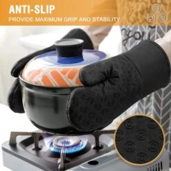 - ANTI-SLIP & COMFORT: The non-slip silicone on the surface of the gloves and potholder can provides a firmer grip and prevents the pot or bakeware from slipping out of your hand. The lining is made of soft quilted cotton, which makes it more flexible to use. Moreover, the cotton material is more breathable to increase the comfort when wearing the gloves as well