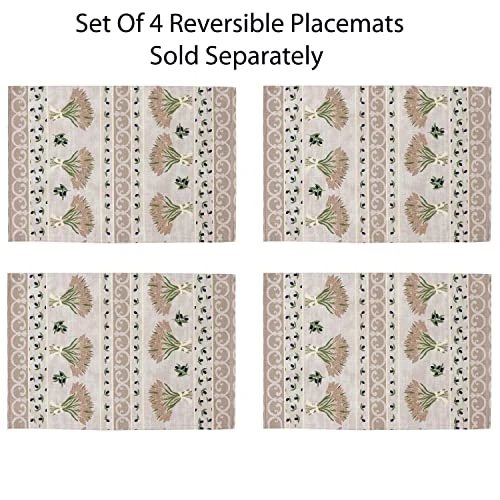 - STYLING:The Provence Wheat and Olives Country French Fabric Placemats are reversible to the same design and feature a fully engineered border of tan, linen and green colored sheaves of wheat tied with bows and a smaller border of olives. The center bordered motif features an intaglio design in shades of linen and beige with repeat olive and wheat border designs. background.
