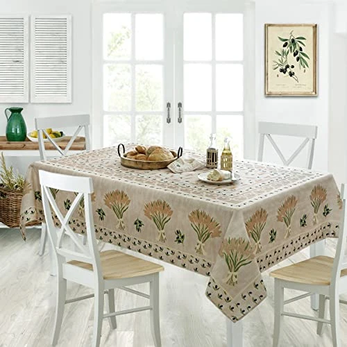 - FEATURES: Easy Care Indoor and Outdoor Tablecloths for Kitchen, Dining Room, Patio, Barbeques, Picnics and Restaurants. Perfect for Spring, Summer and Year Round Dining Entertaining, and Decorating. 100% Polyester Easy Care, No Iron, Stain Resistant fabric