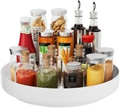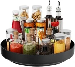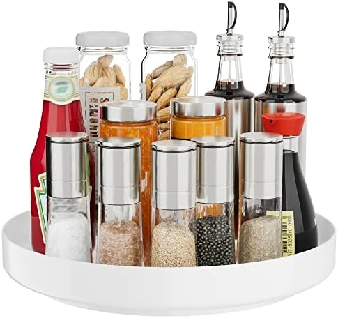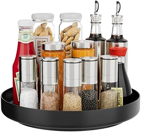 - Versatile Lazy Susan:This rotating organizer can be used in kitchen countertop or cabinet pantry storage ,also suitable for bathroom ,refrigerator , office , bedroom, living room,laundry room. can be widely used to organize spice seasoning bottles,food jars, cosmetics, bath supplies, skincare products, nail polish, drinks snacks etc