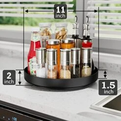- Large Space Organizer:This lazy susan organizer measures 11 inch,providing more storage capacity in your deep base cabinets,upper shelves and cluttered corner countertop , Making the most of the limited space in your home to keep things neat and organized.