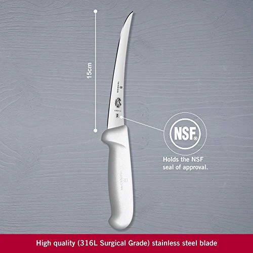 - KNIFE DIMENSIONS. Stainless steel blade — 6″ in length. Meets the strict National Sanitation Foundation (NSF) standards for public health protection.