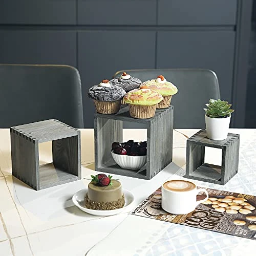 - Wood risers for decor farmhouse – risers can be nested inside each other for easy compact storage when not in use