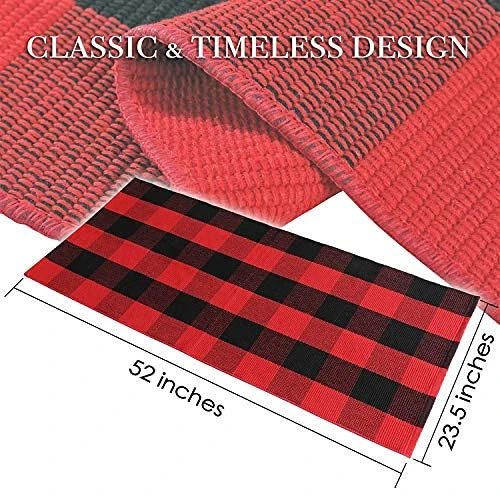 - βGreat Gift For Anyone – You are able to send this buffalo checkered rug as a Christmas gift for your loved ones! The plaid red and black coloring will provide farmhouse accent colors to any home. Give this checker rug welcome doormat to a friend or family member!