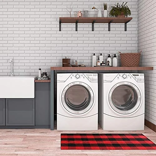 - βBuilt To Last & Easy To Clean – Our buffalo plaid checkered doormat is made of half cotton and half polyester, which make it environment-friendly, comfortable and durable. Having these materials allows for a thicker rug and makes it feel soft to the touch. Simply vacuum or shake to keep fresh. Please wash this machine washable rug separately in cold water using mild detergent. Tumble dry on low setting and no bleach.