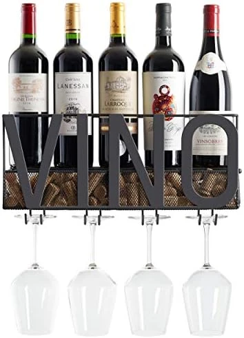 - ✅ BEAUTIFUL WINE HOME DECOR – Not only is this wine rack functional, allowing you to easily store and organize 5 wine bottles and hang 4 wine glasses perfectly within reach, but it’s also elegant. The decorative design will make a stylish statement in your kitchen, dining room, foyer, or wherever it’s placed in your home.