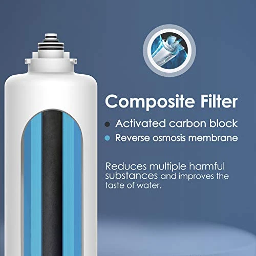- 𝐏𝐫𝐞𝐦𝐢𝐮𝐦 𝐦𝐚𝐭𝐞𝐫𝐢𝐚𝐥: The filter uses a superior natural activated carbon block and large reverse osmosis membrane, effectively reducing most impurities and improving the taste of water.