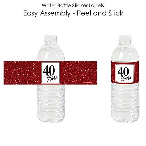 - Water bottle stickers each SIZE 8.5″ wide x 2″ tall, perfect for any beverage bottle or container less than 8.5″ in diameter. EASY TO USE: Prepare your water bottles or containers by ensuring they are room temperature and dry. Removing the original bottle label is preferred but not necessary. Carefully peel one 40th anniversary sticker label from the backing and adhere to a bottle, starting at the middle and pressing toward edge. Smooth label around container and chill your beverages if needed.