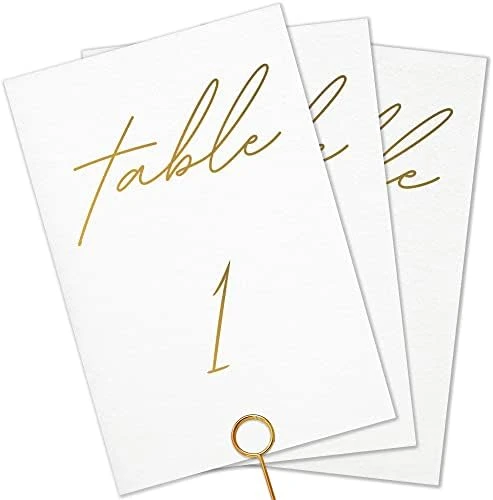 - STURDY CARD STOCK: Our gold table numbers for wedding reception are gold foil printed on 130lb heavyweight matte white cardstock to ensure sturdiness.