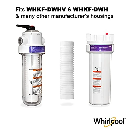 - Compatible Model: Each replacement cartridge’s size – 10″H X 2.5″W. Featuring rigid construction and grooved surface area for extra sediment holding capacity, this sediment filter also replaces WHCF-GD05 filters.