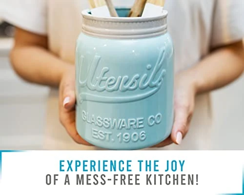 - Large size – Generous 5.5” diameter below the neck, with total height of 6.75”; perfect to neatly store and organize kitchen utensils and tools, have everything handy in one place.