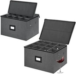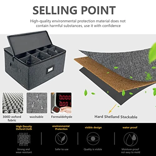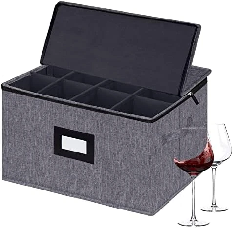 - 🍷【Premium material wine storage】The Glassware storage containers,is made of premium 300D oxford fabric and sturdy thick cardboard,the lid made with thick cardboard inside,the side pieces provide additional protection,so it’s more sturdy than others.And a label window is equipped for quickly identifying your glasses without having to open.