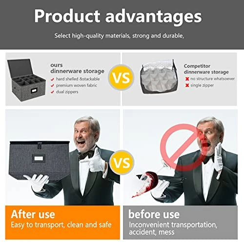 - 🍷【Double strong zipper stemware box】Dinnerware storage organizers equipped with #5 stainless steel zippers which are hard to be broken,top-grade,fasion design,two-way zippers allow it to easily slide along the colsure when in use.