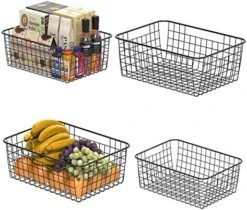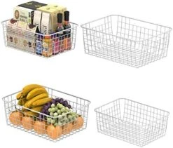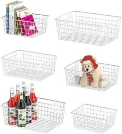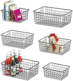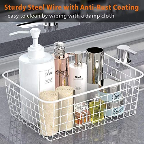 - 【Multifunction】The wire basket is very versatile and practical, can be used in anywhere at home, such as pantry storage, kitchen cabinet, freezer, clothing wardrobe, bedroom, bathroom and any table or shelf storage; The basket is the perfect solution for items storage, let you keep the clutter totally under control