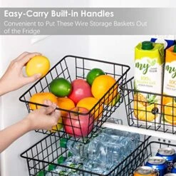 - Built-in Handles —- These freezer organizer bins have handle grips on the sides making it easy to carry and access contents. You just take the metal basket out and get the items you want, then put it back in so simple. Organize all of your kitchen essentials to make organizing and everyday living with ease.
