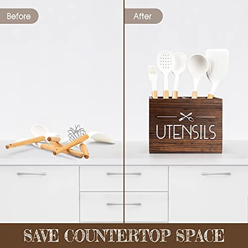 - UTENSIL HOLDER FOR COUNTERTOP: Add our wooden kitchen utensil holder to your countertop to hold all your favorite cooking tools. It can keep the countertop tidy and save countertop space in your kitchen.