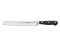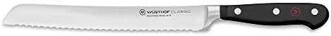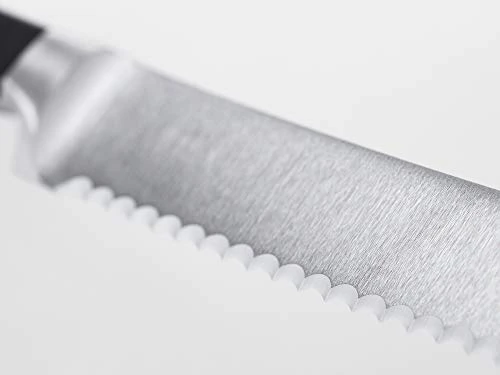 - WÜSTHOF BREAD KNIFE – 8″ Bread Knife slices through bread or baguettes with minimal crumbs. The serrations along the edge help guide the blade through tough crust without compressing the soft inside
