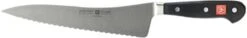 - WÜSTHOF DELI KNIFE – Features an 8” long offset blade with scallopped edge. The offset blade forces the hand to be further away from the cutting board, allowing it to slice through thicker foods. Ergonomic handle design made from a long-lasting synthetic material to resist fading and discoloration