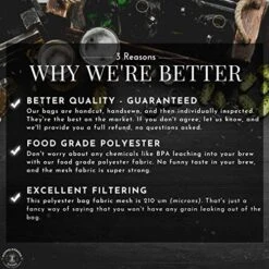 - 🍺 ❛ DURABLE FINE MESH ❜ ~210 micron weave and durable construction means all grain remains and the wort is easily drained and filtered out for the boiling process, all without risk of tearing or ripping.