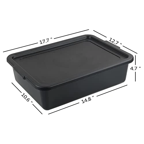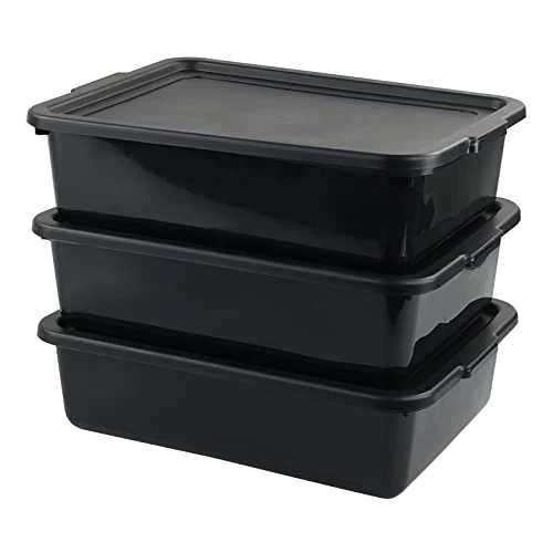 Xyskin Plastic Storage Utility Bus Tote With Lid, Restaurant Commercial Bus Box, 3 Packs, Black