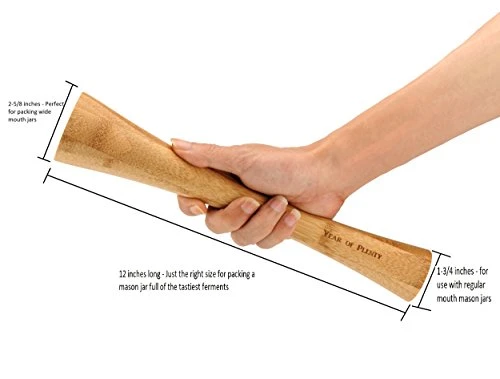 Year Of Plenty 12-Inch Bamboo Fermenting Tamper – For Packing Sauerkraut And Other Healthy Fermented Foods Into Mason Jars | Also Known As A Sauerkraut Pounder, Vegetable Stomper Or Kraut Pounder